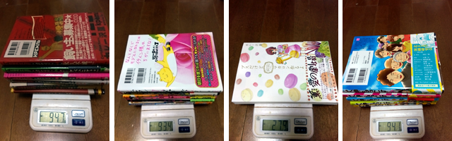 マンガはページ数や紙質、大きさによって1冊あたりの重さに差が大きいですが「20冊=3kg超」が目安でしょうか。